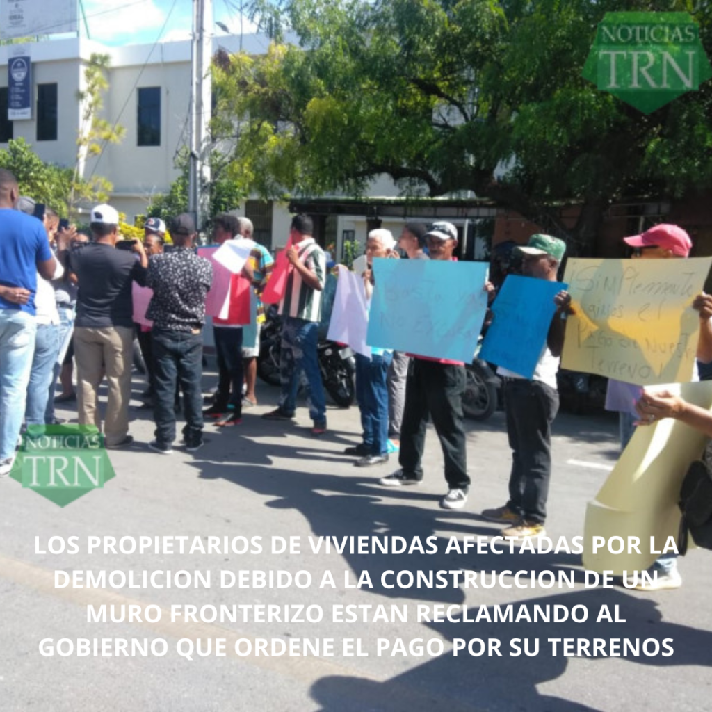 Este jueves, más de 20 propietarios de terrenos y viviendas demolidas, donde se construye la verja perimetral en la frontera con Pedernales, reclamaron que les sean pagados sus solares.