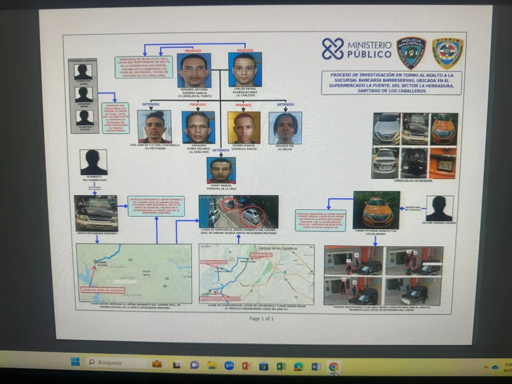 En el informe se establece que Gerardo Antonio Ramírez García y Carlos Rafael Rodríguez Báez, fueron apresados el día 22 de julio del 2013, ambos vinculados al asalto a la cooperativa San Miguel, ubicada en la carretera Las Charcas en Santiago.