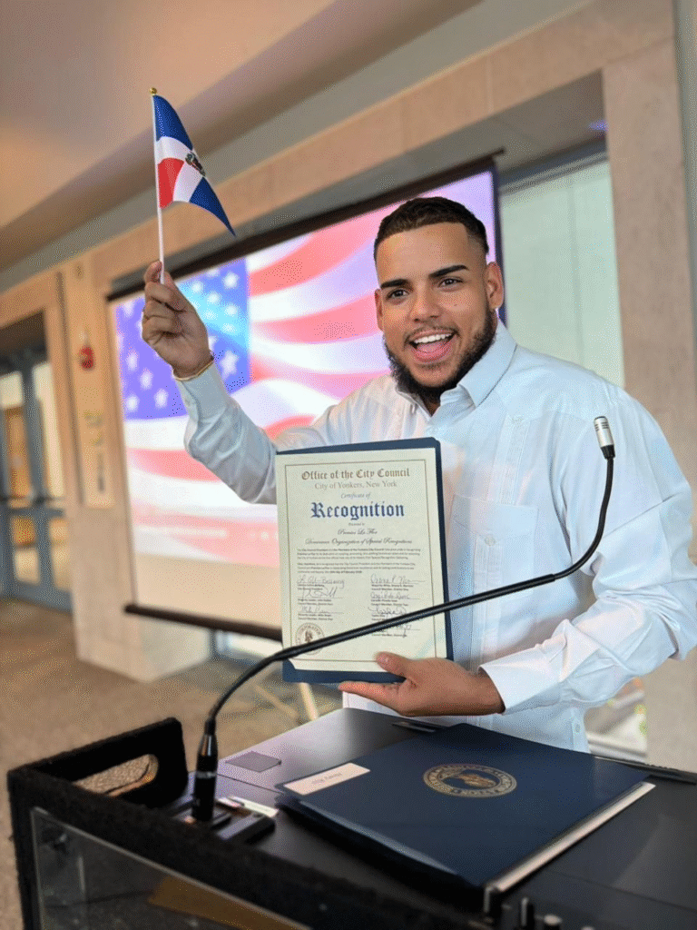 La ceremonia se realizó en la prestigiosa Yonkers Public Library, espacio que sirvió como escenario para reconocer a jóvenes sobresalientes en distintas áreas profesionales, artísticas y comunitarias.